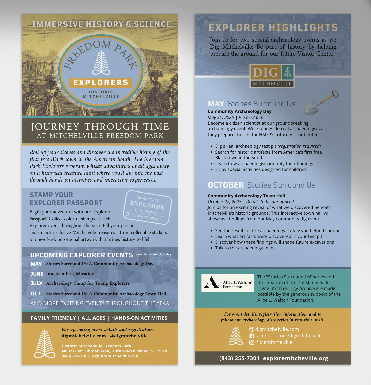 For Dig Mitchelville, we created a marketing campaign that built anticipation for a community dig at historic Mitchelville Freedom Park. The event brought together community volunteers who ended up uncovering over 200 artifacts from America's first self-governed town of formerly enslaved people.